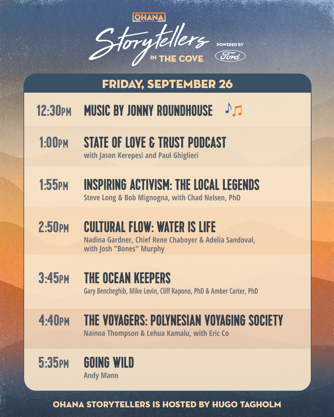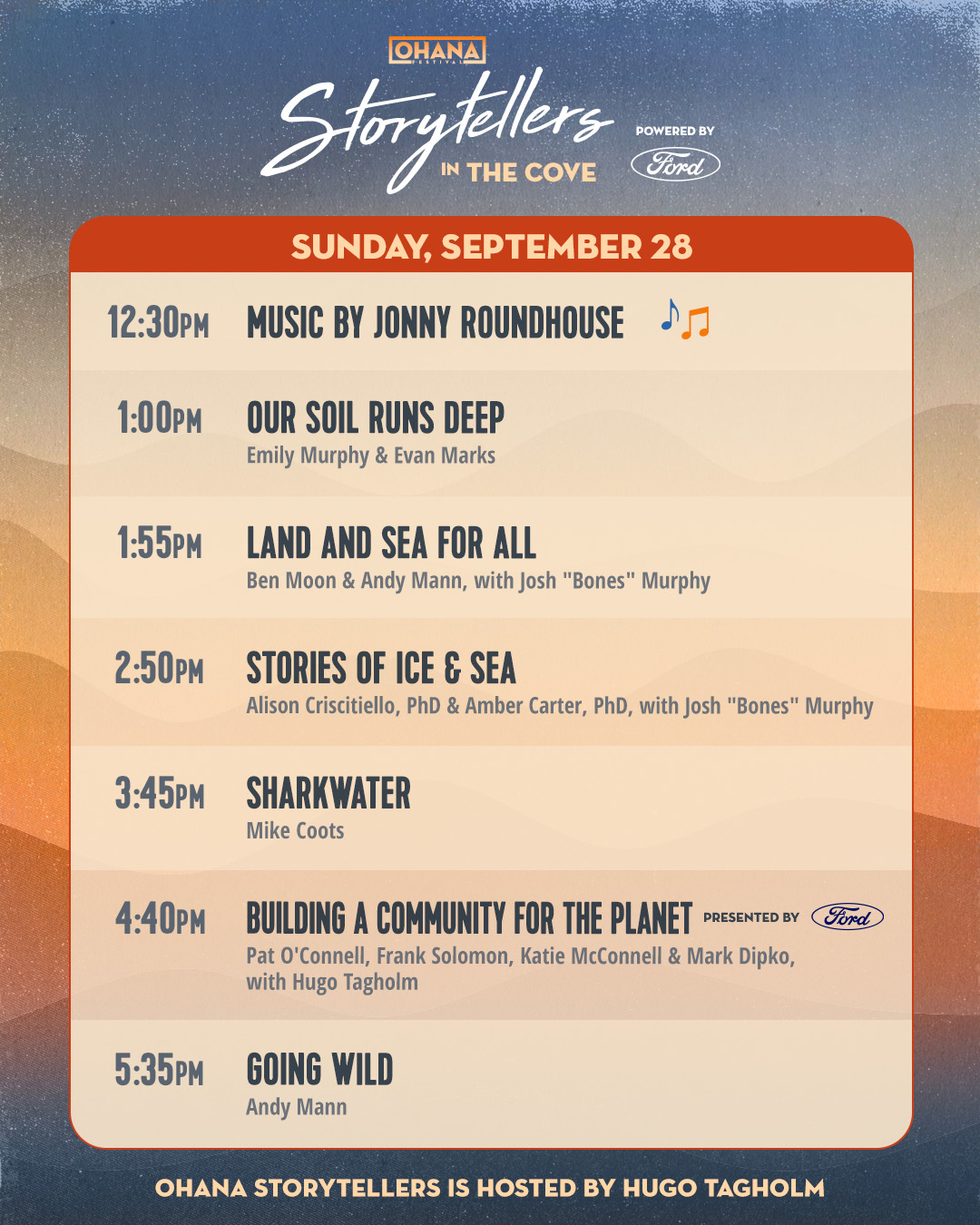 Stop by The Cove for immersive stories and talks dedicated to the core pillars of Ohana Fest: Oceans, Activism, Environmental Justice, Art, Community and Indigenous Voices.